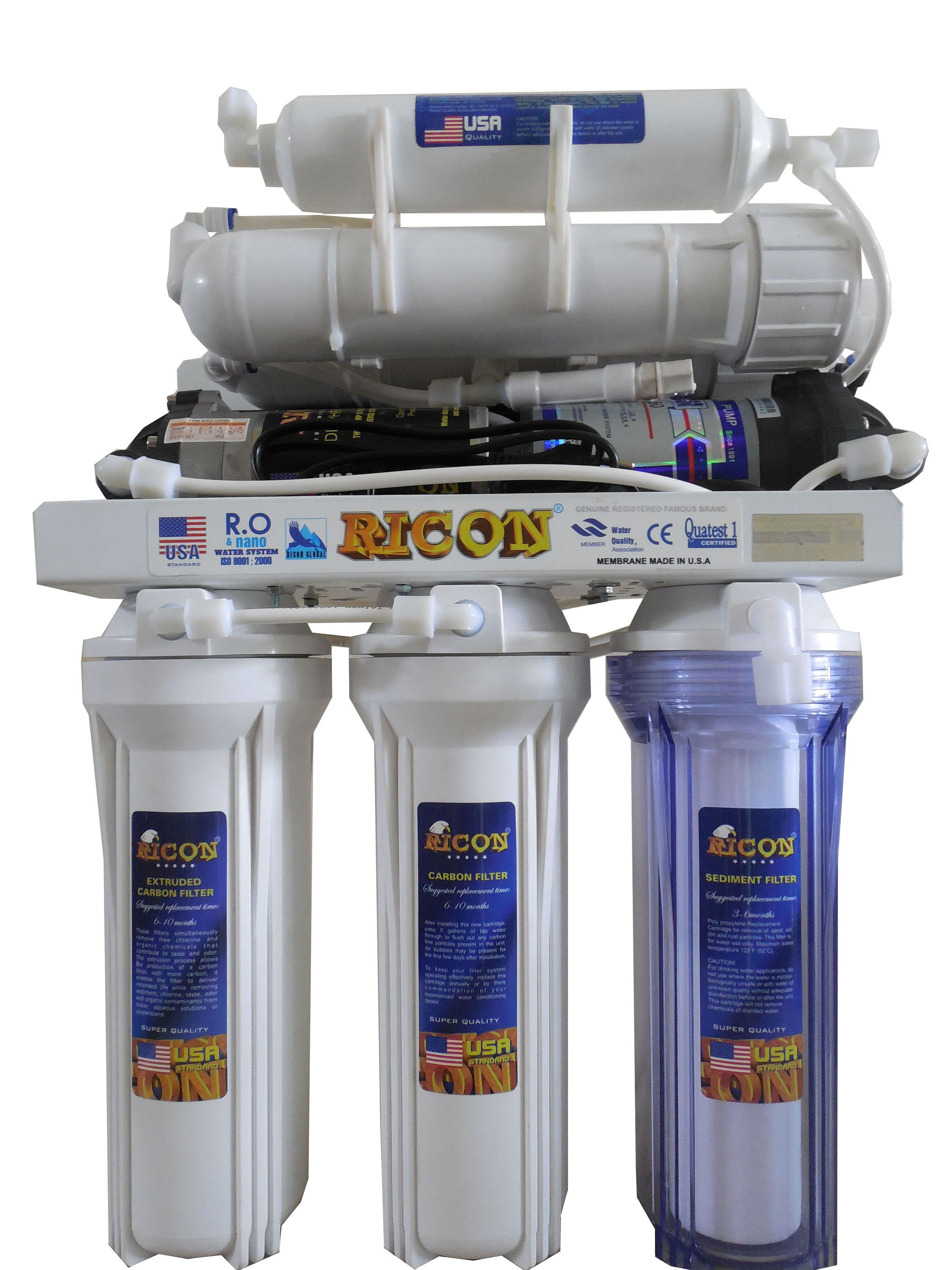 Cấp lọc 4: Màng RO (màng thẩm thấu ngược) với độ tinh lọc 0.0001Micron, loại bỏ trên 99% vi khuẩn, lọc trên 95 % các tạp chất hòa tan trong nước, nước trở nên tinh khiết.